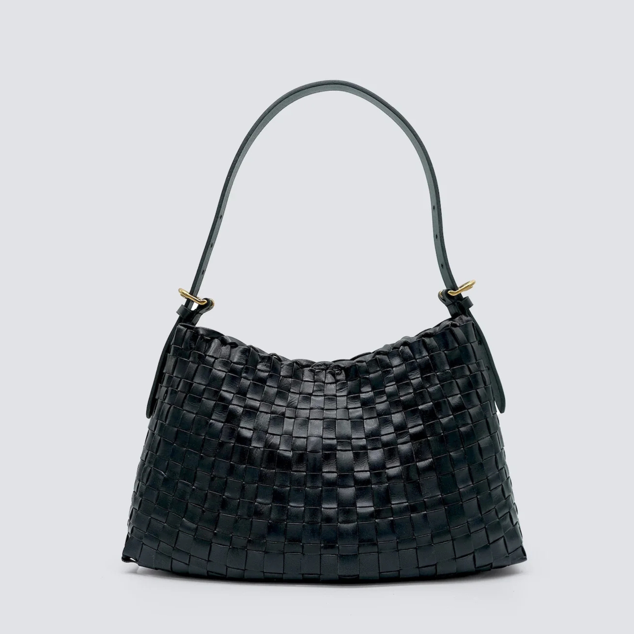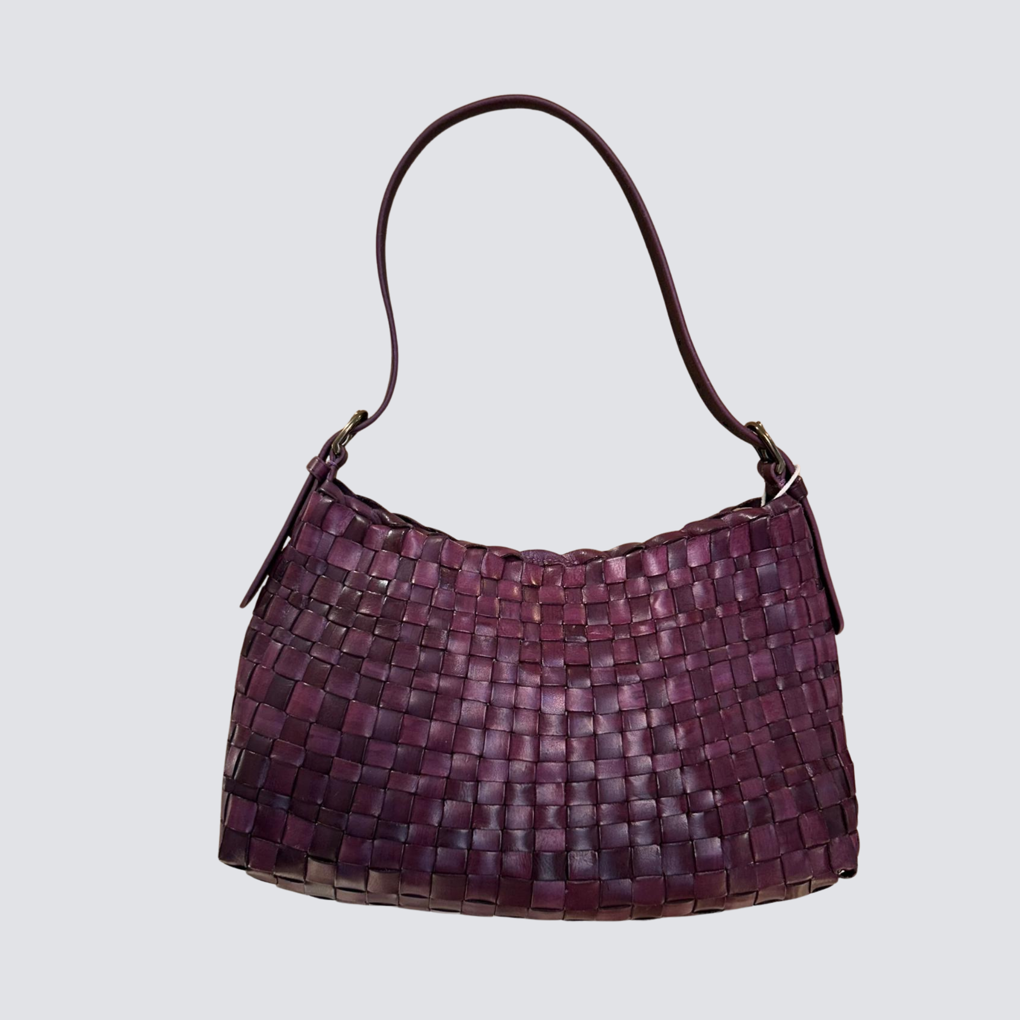 “description”: “Borsa destrutturata in pelle intrecciata a mano, con manico regolabile e texture irregolare. Perfetta per chi cerca uno stile vintage e funzionale.”,