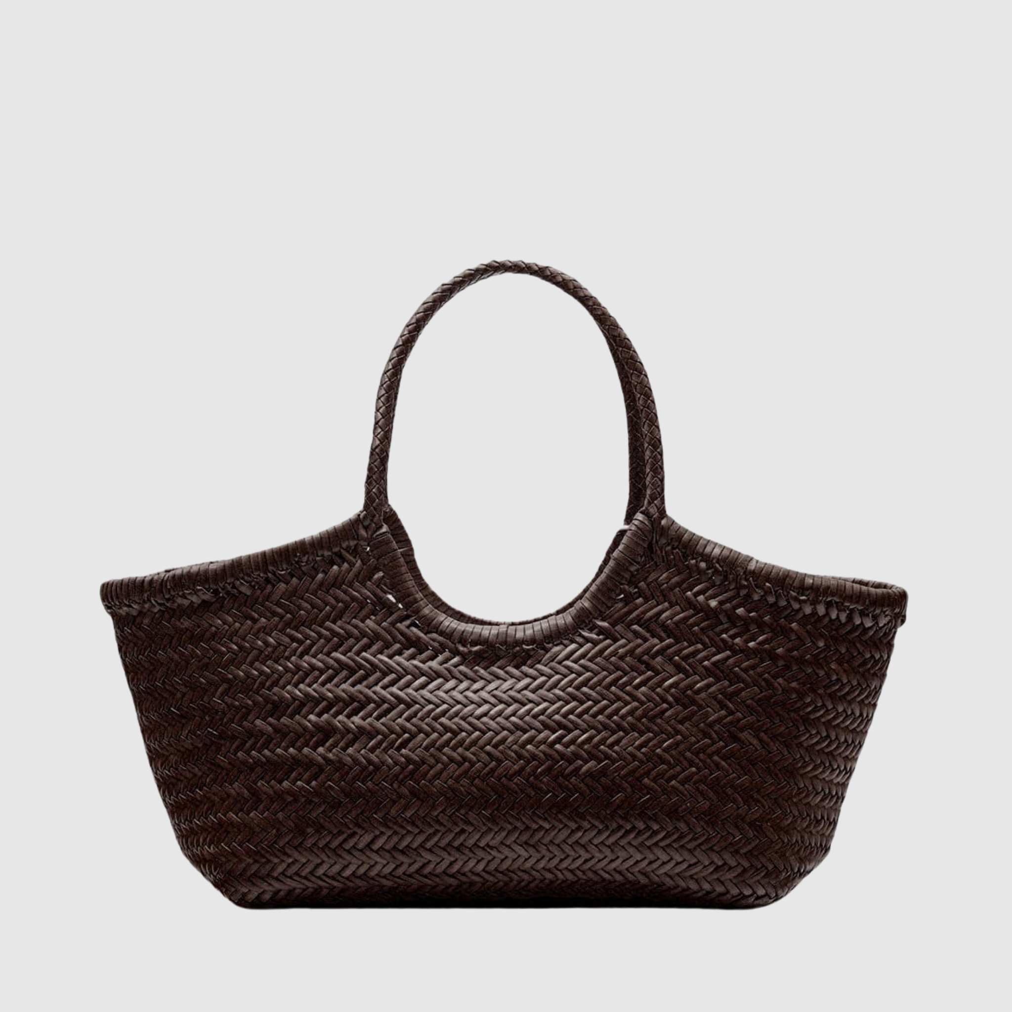 La Dragon Diffusion Nantucket Big è una tote artigianale in pelle intrecciata a mano, sfoderata e capiente. Lavorazione tradizionale, materiali naturali e un design essenziale che si integra con facilità in look casual chic, business e serali.