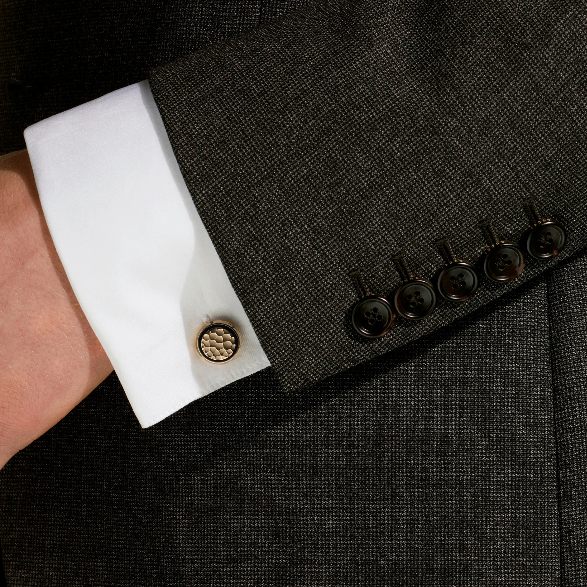 Realizzati in robusto acciaio inossidabile, questi gemelli sono pensati per durare. La moderna finitura PVD color oro garantisce una resistenza superiore, assicurando che questa piccola opera d’arte possa essere indossata per anni. - ›