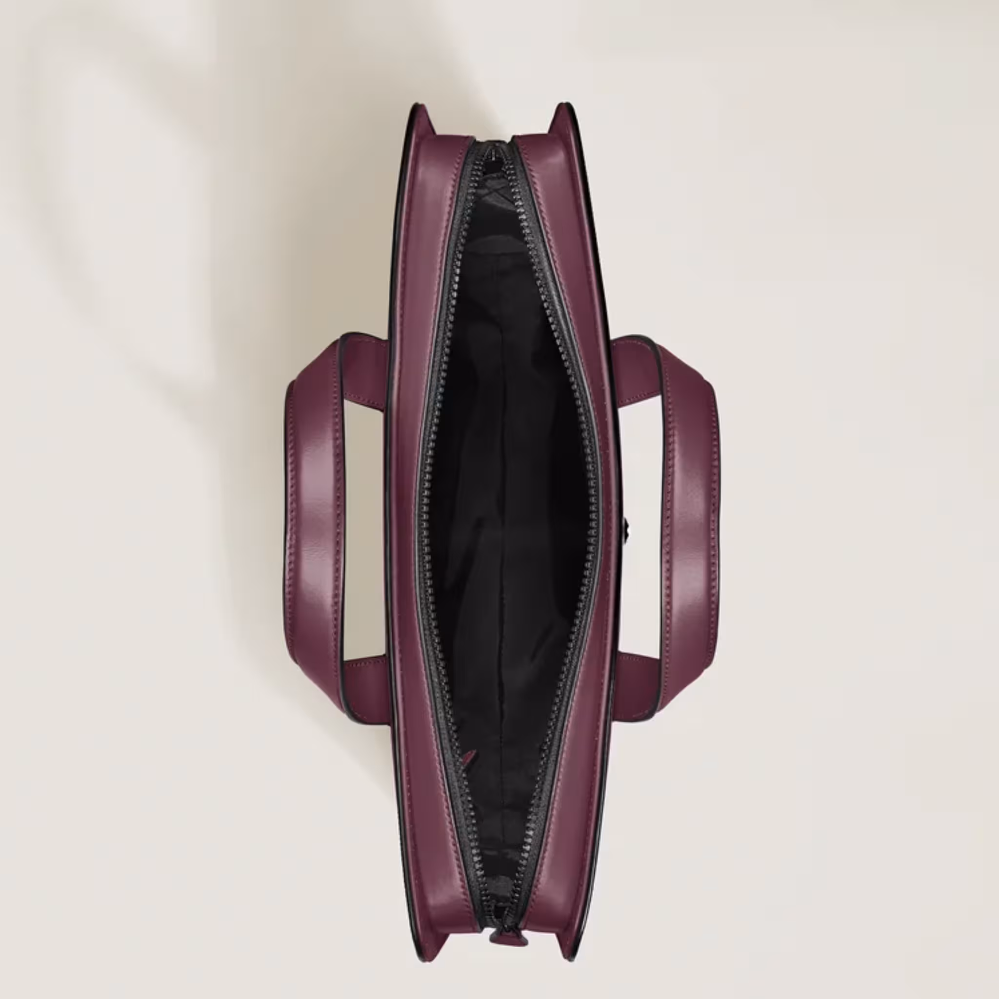 Design pensato per contenere documenti A4, laptop sottili e oggetti essenziali, con scomparti multipli, tasca con cerniera e due passanti dedicati agli strumenti da scrittura. Dimensioni: 37 x 6 x 28 cm.