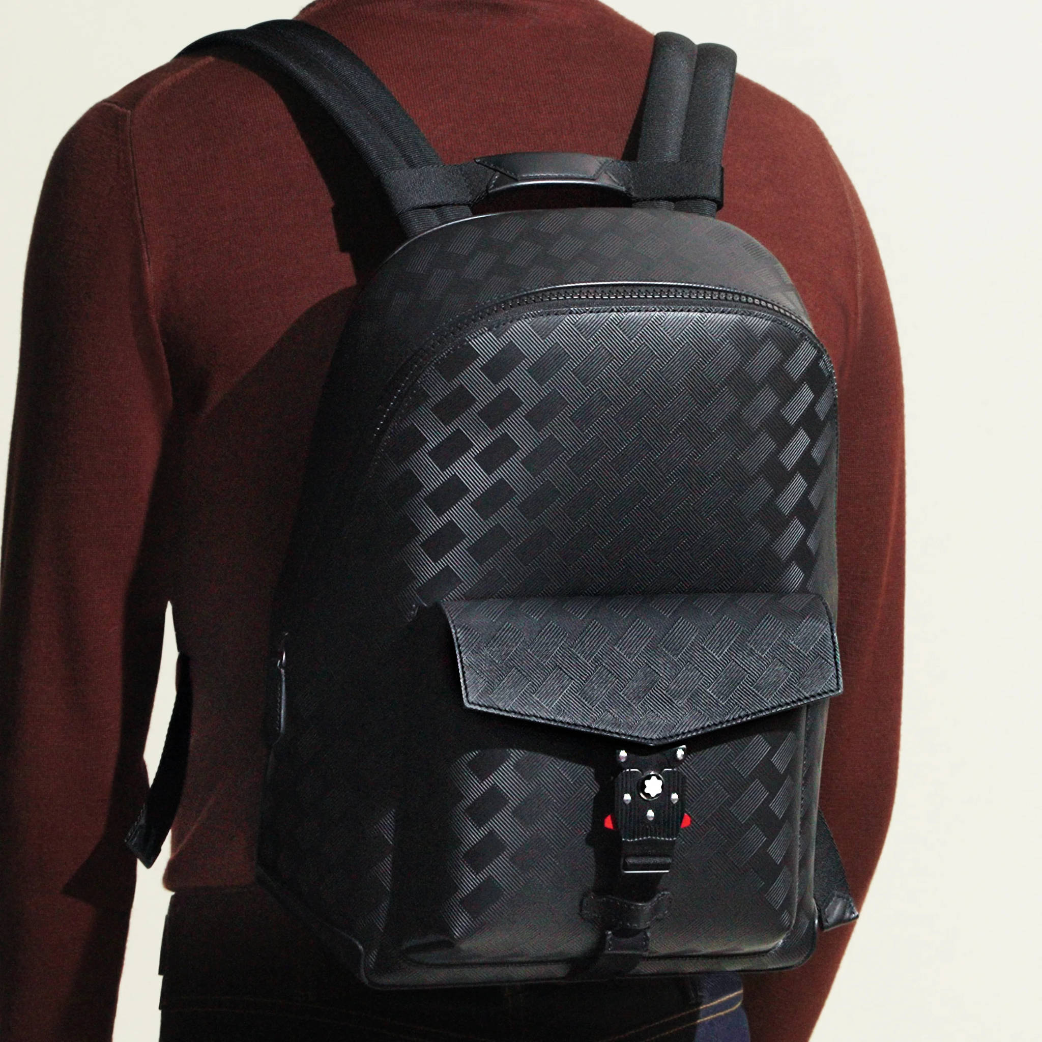 Montblanc Extreme 3.0 – Zaino in pelle nera con fibbia M LOCK 4810 e goffratura distintiva.